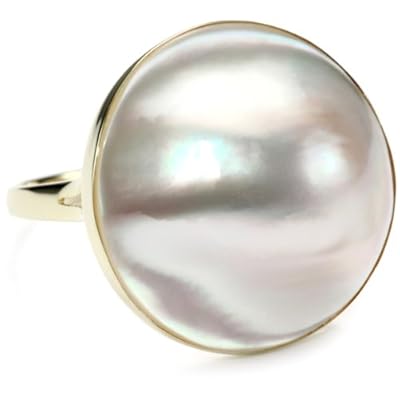 14k Yellow Gold Mabe Cultured Pearl Blister Ring (20mm), Size 7